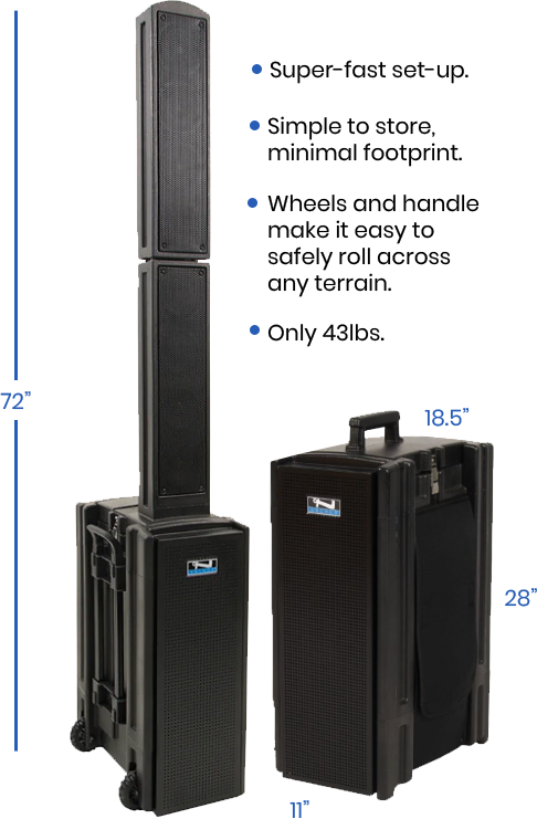 Beacon 3 brings powerful sound to large spaces — without the burden of heavy, cumbersome equipment.  Its intelligent, ultra-mobile design allows effortless transport, lightning-fast setup, and compact storage, making professional-grade audio accessible to even a single user.