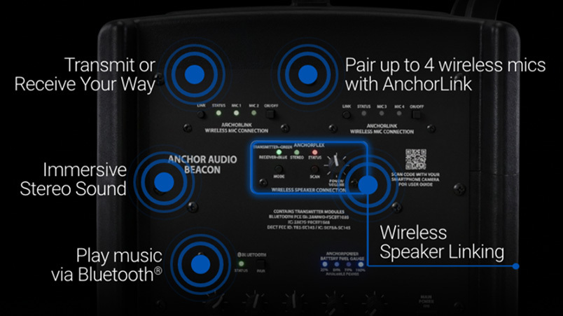 • Connect multiple speakers wirelessly for expanded coverage with built-in AnchorFLEX Wireless Linking.
